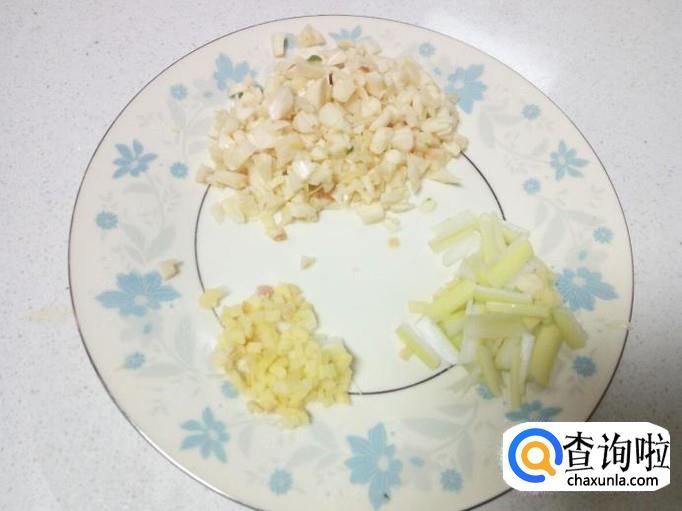 葱,姜,蒜,切成末。蒜要稍微多一下,因为主要是用蒜末提味。