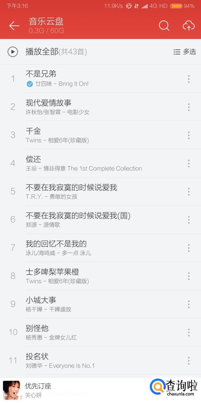 在音乐云盘中可以看到我们曾经上传的音乐文件,点击音乐文件名即可在线播放。