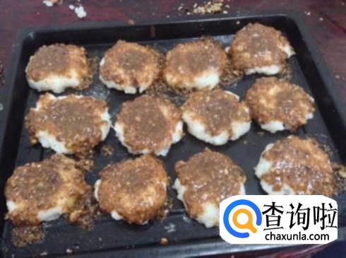 10分钟后取出烤好的蒸米饭,在上面撒上核桃粉,再放入250°的烤箱里烤1-2分钟,最后取出撒上芝麻就完成了。