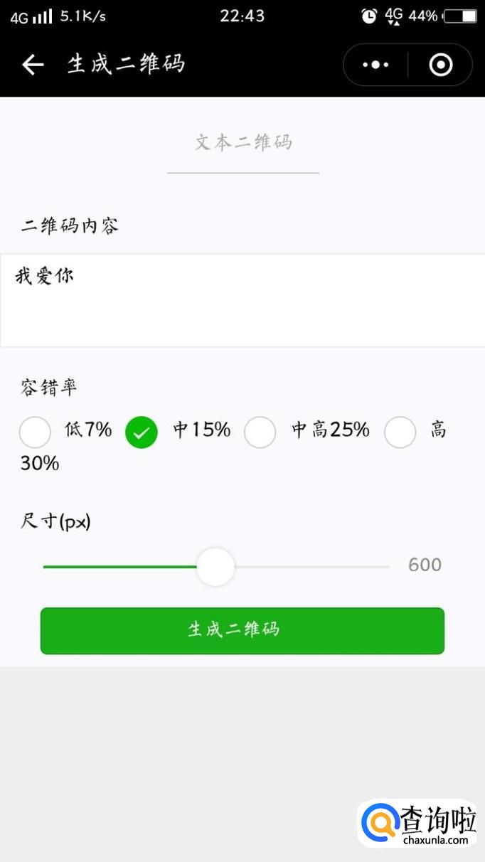选择二维码生成器后,进入页面,输入你想要说的话,然后点击生成二维码。如下图所示。