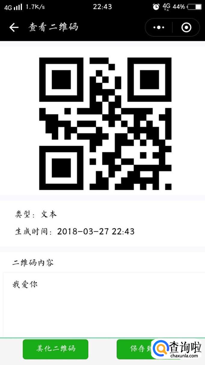 可以选择保存到手机,这样简单的二维码就做成了。也可以选择美化二维码。如下图所示。