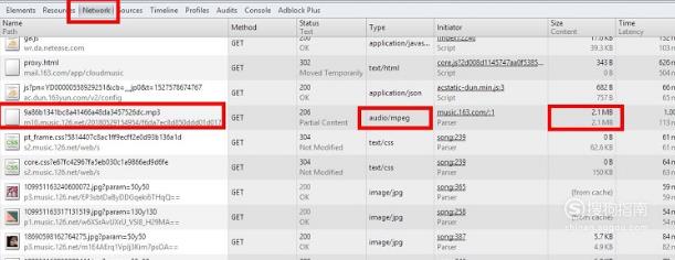 点击播放,type那栏找到media(或者audio),或者直接在size那栏寻找最大一个文件。