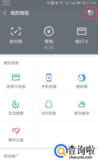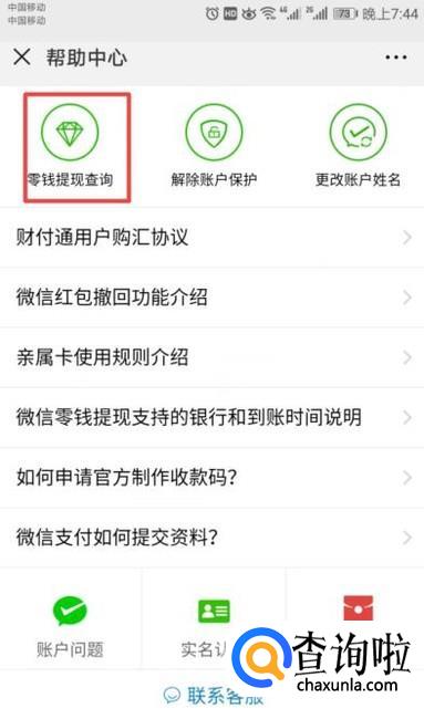 弹出的界面,我们点击零钱提现查询;
