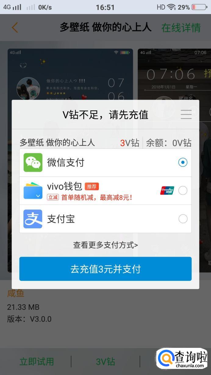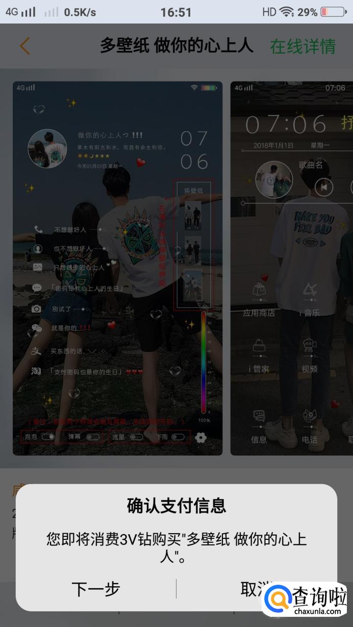 找到之后,点击进入,在页面下角就会有一个需要多少v钻框框,点击【下一步】,用微信支付一下。