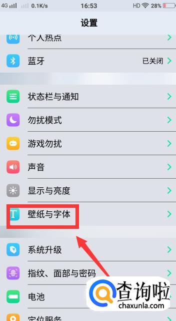 进入【设置】页面后,点击【壁纸与字体】并进入。