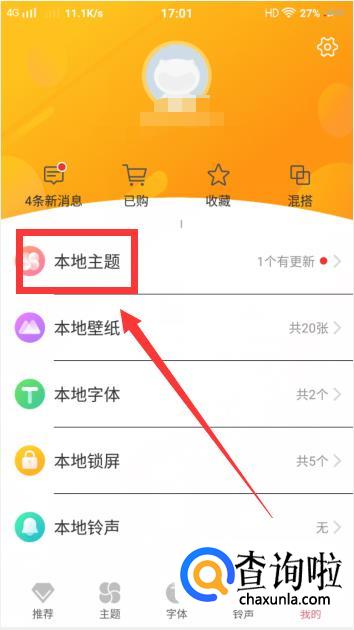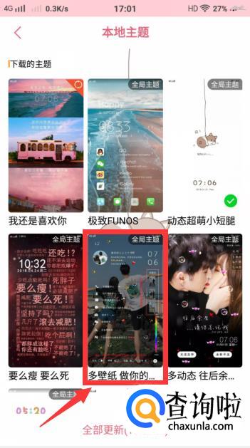 如果你觉得非常不错,那么再进入【设置】,点击【壁纸与字体】,在【我的】页面,点击【本地主题】,找到你试用的动态壁纸。