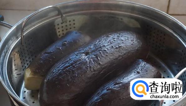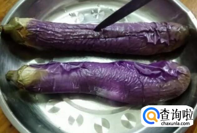 茄瓜已经蒸得很烂,然后用刀子裂开一条条。