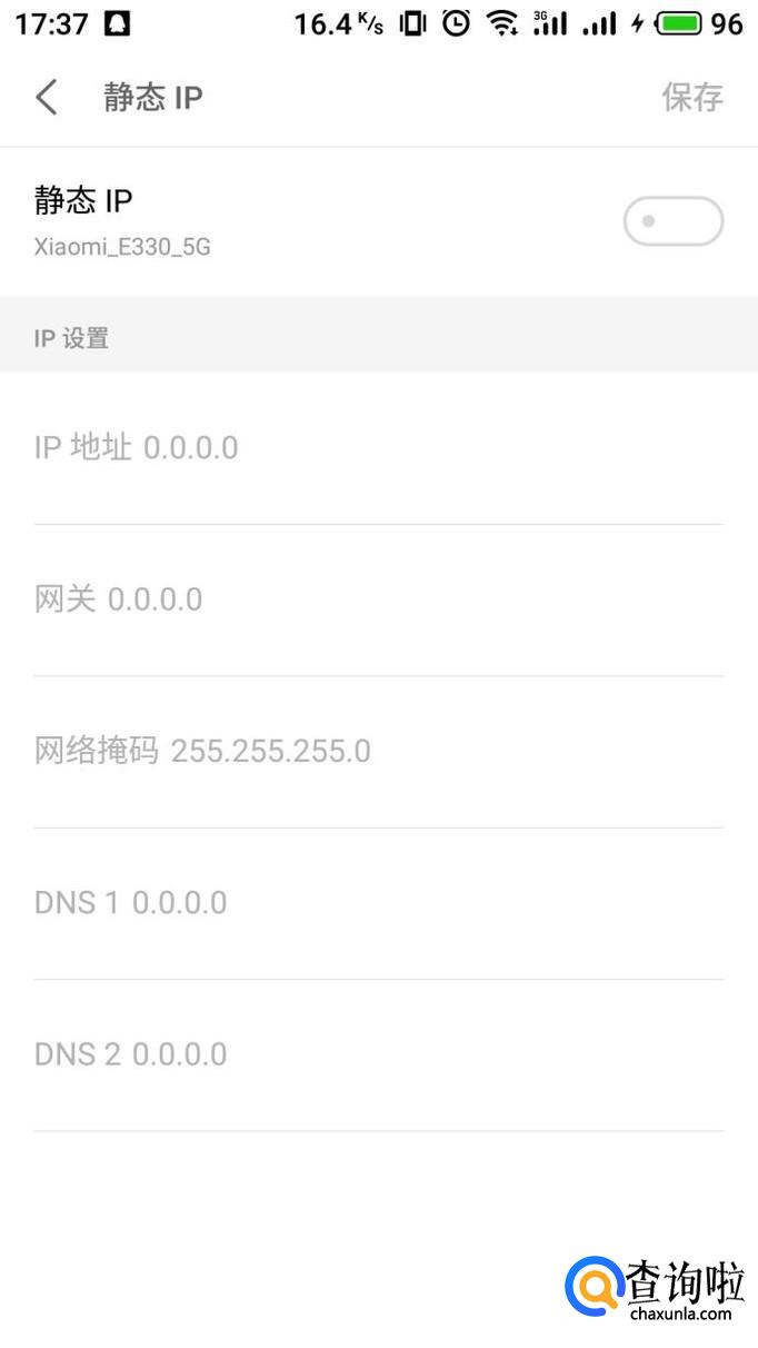 进入静态IP界面,将静态IP右侧的滑块开启。