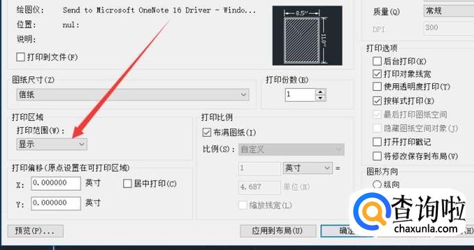 打开打印页面之后,在左边中间的位置有一个打印范围,点开打印范围下面的显示。