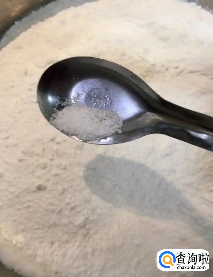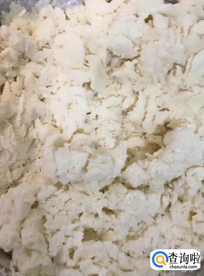 首先,我们把面粉放入一个盆中,加入少许的盐,适量的开水,搅拌成面絮