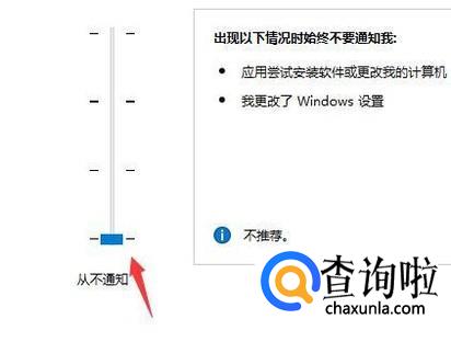 将从不通知拉到最下面来,然后点击确定即可。