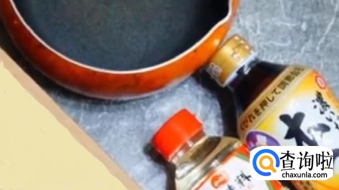 在锅中倒入300ml的水,如果喜欢吃咸味儿的,可以减掉20ml水。将日本酱油和味淋分别倒入杯中。