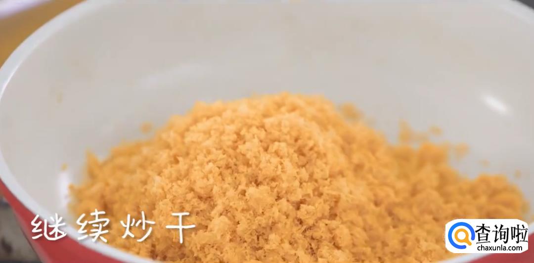 将打碎的鱼肉倒回不粘锅中,继续翻炒至干燥。完全冷却后装袋或者装罐封存。