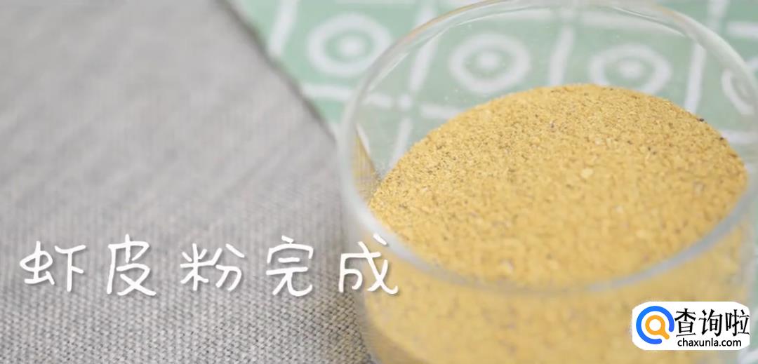 炒干水分后,放入料理机中打碎,虾皮粉就做好了。