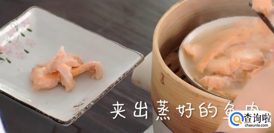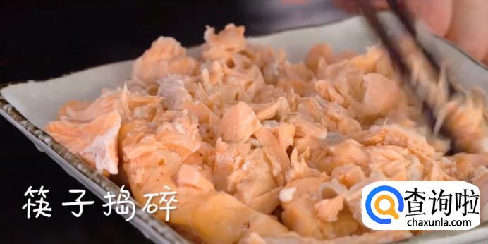 夹出蒸好的鱼肉,用筷子捣碎。
