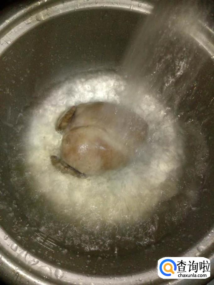 我们将猪心洗净后,放入锅里,加入适量的水,煮开;