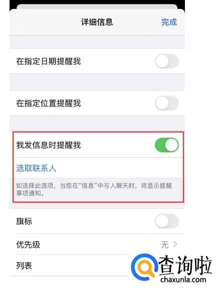 当您下次通过“信息”应用与这位联系人发送信息或聊天时,会出现“提醒事项”通知。
