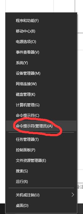 我们先右键"开始"键,选择“命令提示符(管理员)”。