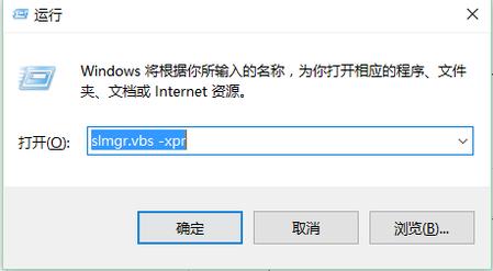 接着我们按下“WIN键”加R键打开“运行”窗口,在里面输入“slmgr.vbs -xpr”,点击运行。