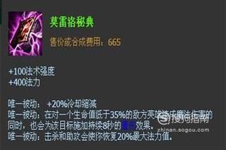 莫雷洛秘典增加维克托的法术强度、法力还能缩减CD,更重要的是,当维克托击中一个生命力低于35%的敌人时,将会有一个重伤效果,同时将敌人击杀还能回蓝。而冰杖有减速、提高血量和法力强度的效果,这两件装备能增加维克托的续航能力。