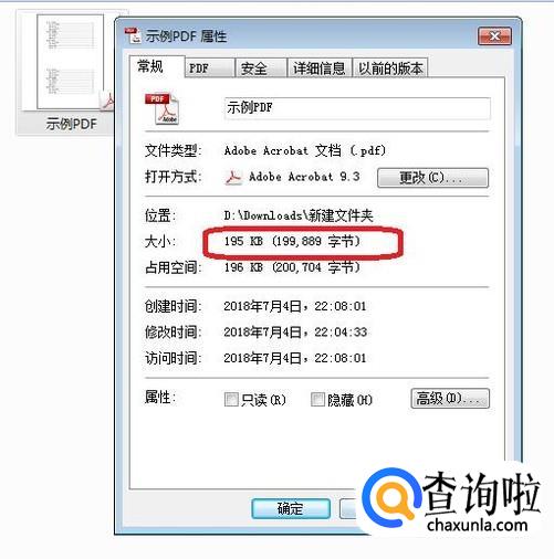 然后我们找到一个需要压缩大小的PDF文件,先看看压缩之前的容量,我们看到是195K。