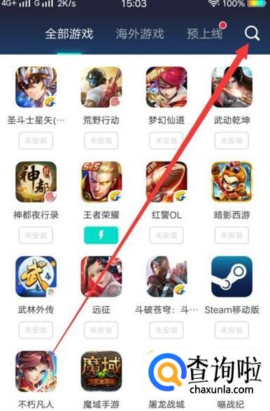 打开软件,点击搜索按键搜索“刺激战场”,如图所示。