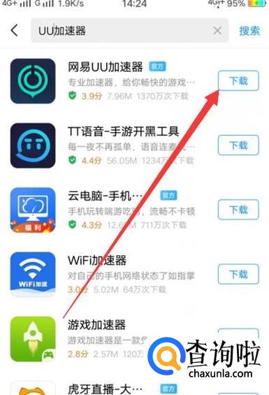 进入之后,搜索“网易UU加速器”,将其下载并安装,如图所示。