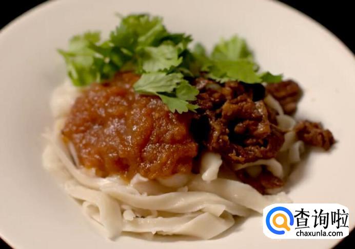 最后在面中加入小炖肉、番茄酱、撒上香菜即可。