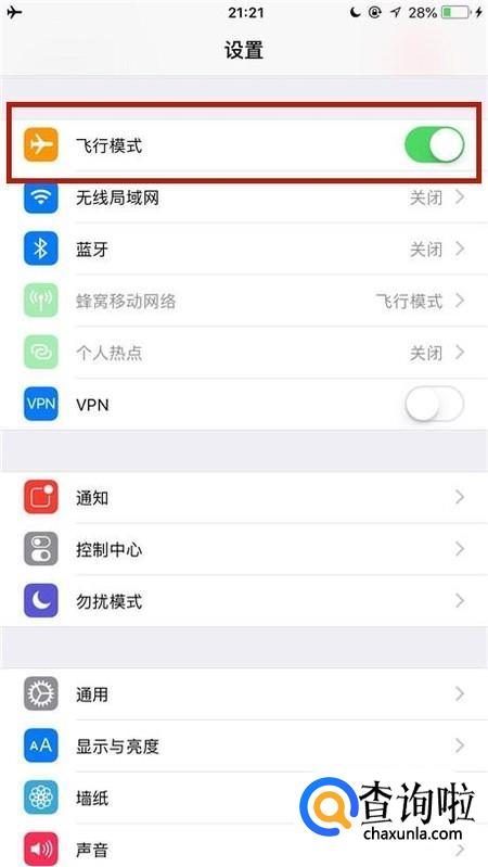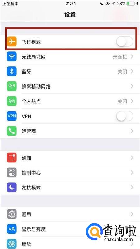 接着点击关闭飞行模式开关,如下图所示。