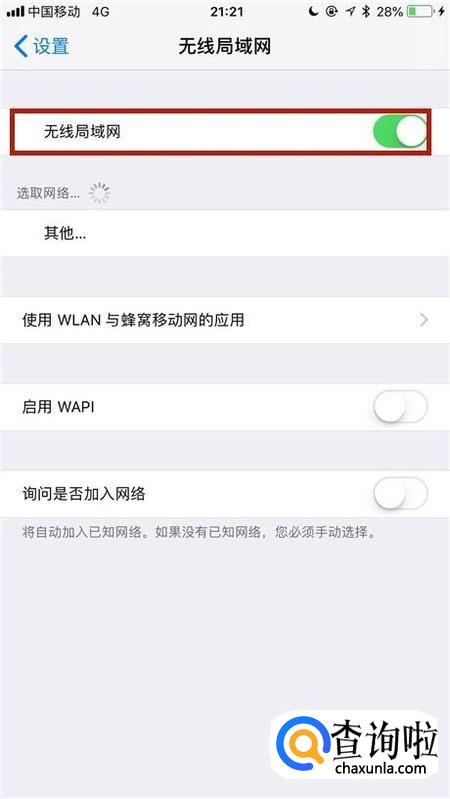 接着点击开启无线局域,如下图所示。