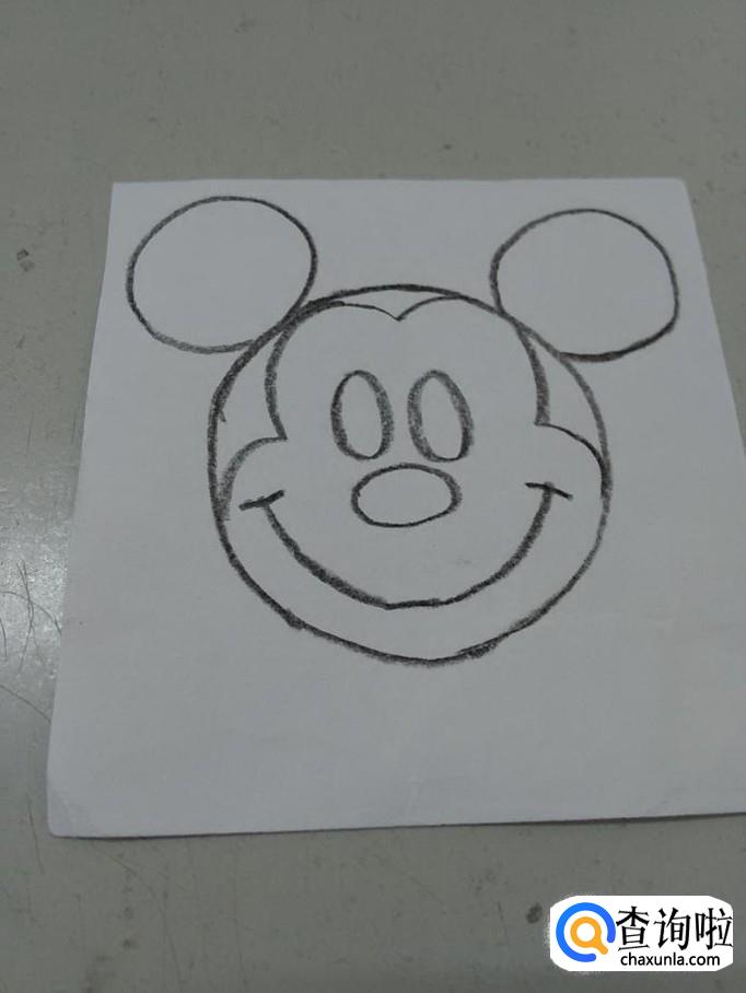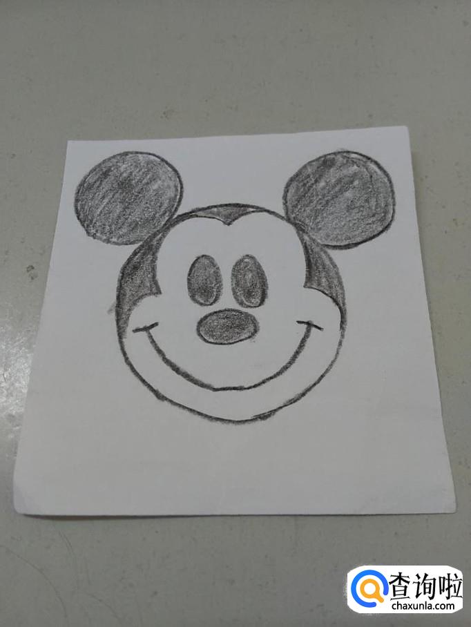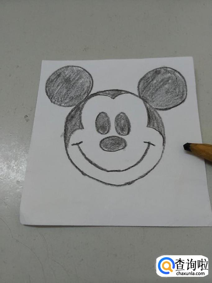最后,用黑笔将耳朵、头顶、眼睛和鼻子涂成黑色,米老鼠就画完了。