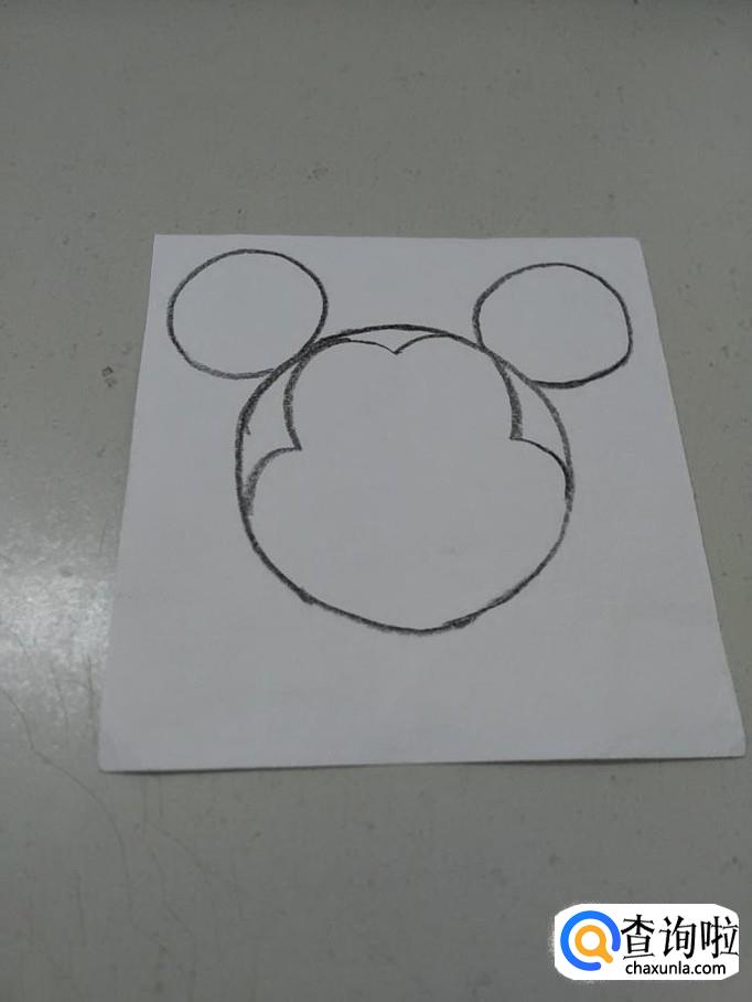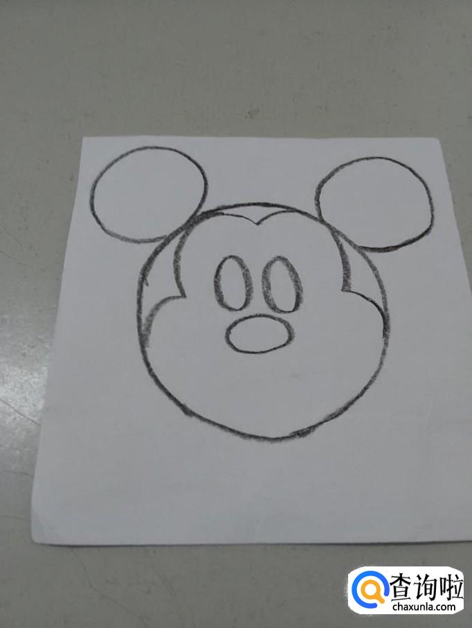 在米老鼠的脸上,画三个椭圆形,表示它的眼睛和鼻子。