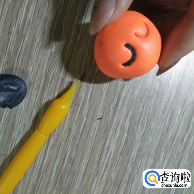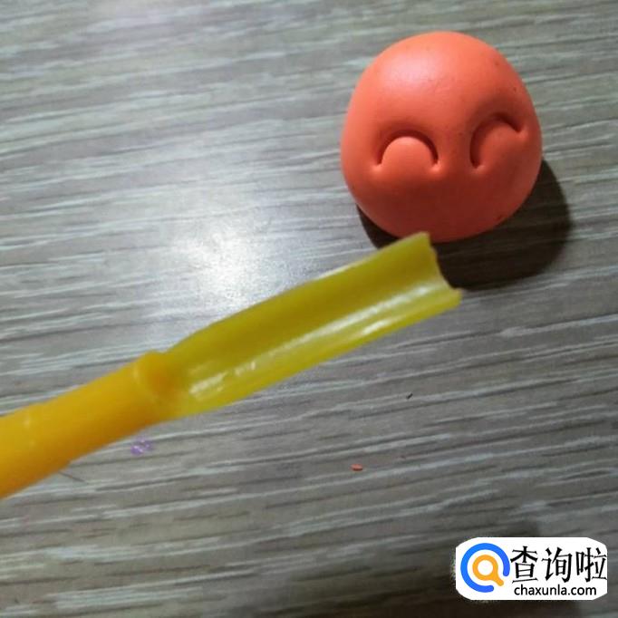 用丸棒工具挖一个笑脸状的嘴巴