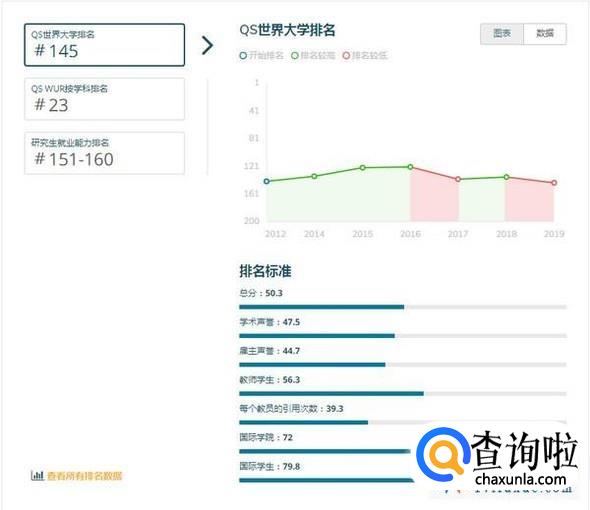 注:QS世界大学排名是世界公认最具影响力的全球性大学排名之一,主要评价指标为:学术领域的同行评价(40%)、全球雇主评价(10%)、单位教职的论文引用数(20%)、教师/学生比例(20%)、国际学生比例(5%)、国际教师比例(5%)