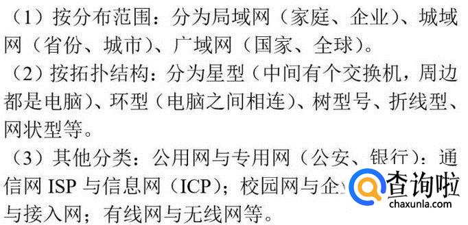 掌握计算机网络的基本分类形式,可以按照分布范围、拓扑结构以及其它分类形式来列举,当然掌握这些知识点的前提是知道计算机网络包含着硬件、软件和协议三部分内容,协议也是分为国际标准和公认标准两种形式,,正是有了这些内容才能计算机能够涵盖全世界的互联网。