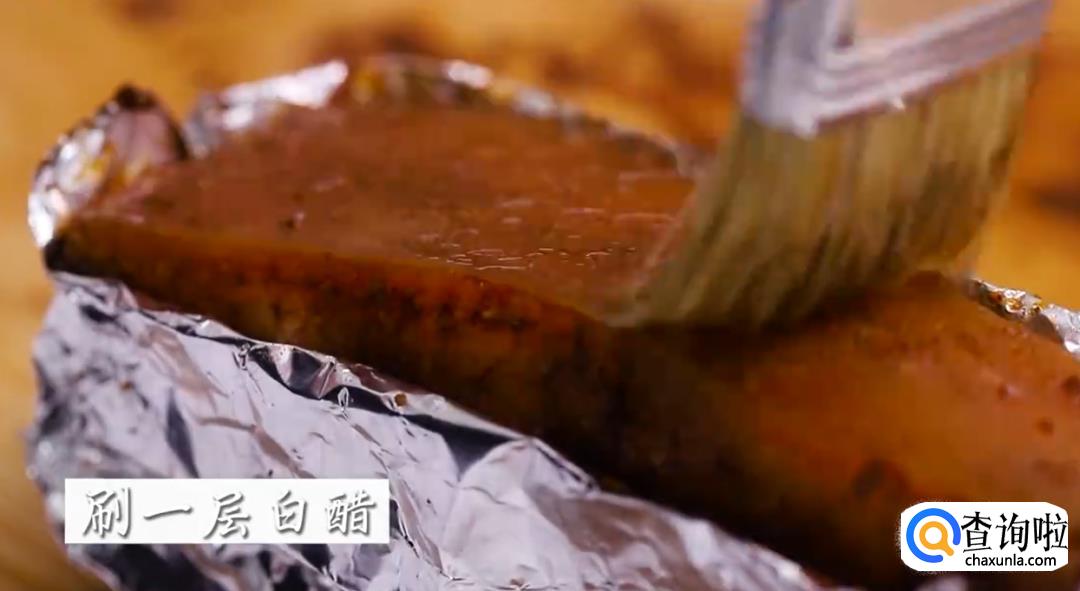 然后在肉皮上刷一层白醋。