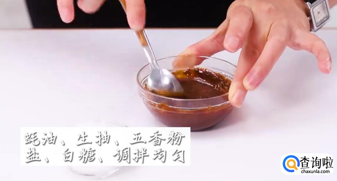 将蚝油、生抽、五香粉、盐、白糖放在一起搅拌均匀。
