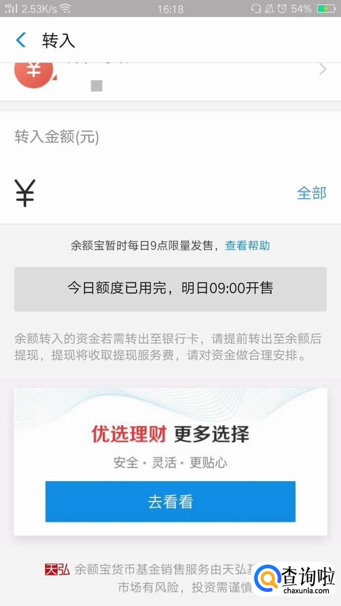最近,余额宝平台做出了调整,并不是想转多少钱进去就能赚多少钱进去。每天早上九点限量发售,所以如果想将钱转到余额宝里,一定要看准时间。