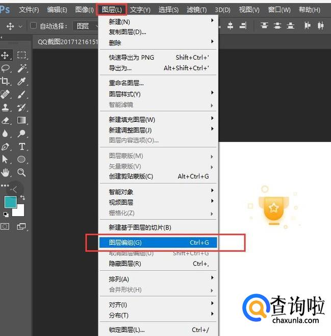 第二种是去菜单栏中找到建立组功能进行建立,选中四个图层之后点击菜单栏中的图层-图层编组,同样可以进行编组。