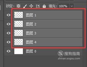 我以四个小图标为例,将这几个图片导入到PS中,在图层面板就可以看到有对应的四个图层,这时他们的互相独立的,还没有建立组关系。