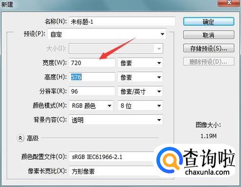 打开ps我们按下Ctrl+N键在弹出的对话框内设置参数如图所示: