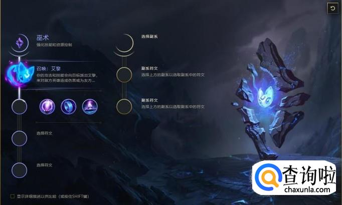 首先中单岩雀的主系符文我们选择巫术,巫术可以强化技能和资源控制