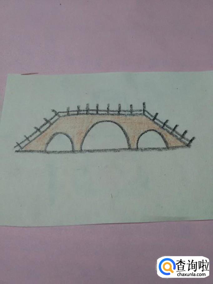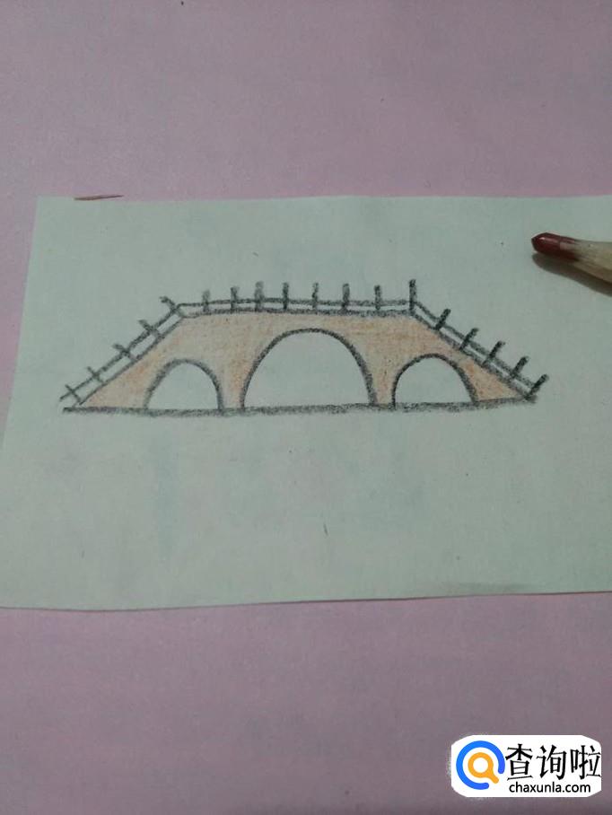最后,用棕色笔将桥身全部涂成棕色,桥就画完了。