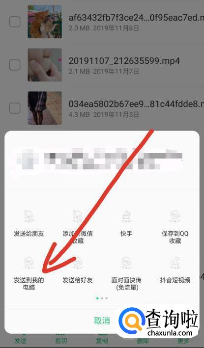 找到“更多按钮”点击,进入页面,点击分享功能,选择“发送到我的电脑”。