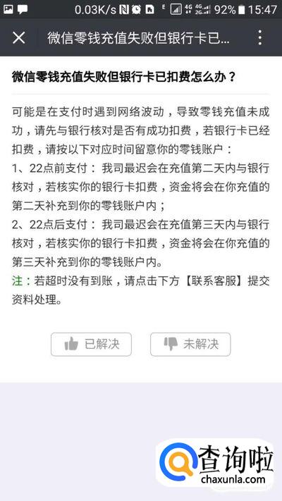 微信充值零钱但是银行扣钱了怎么解决