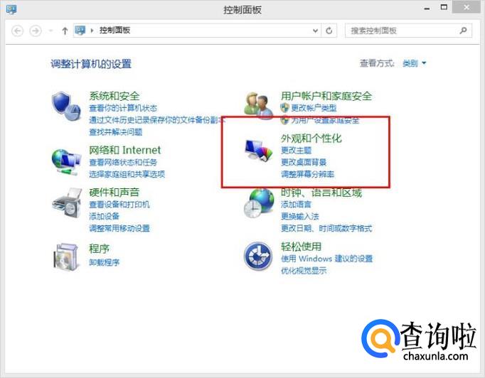 选择“外观和个性化”。