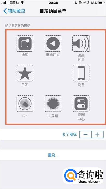 如下图,在这里我们可以对小白点中功能进行添加和删除的操作。