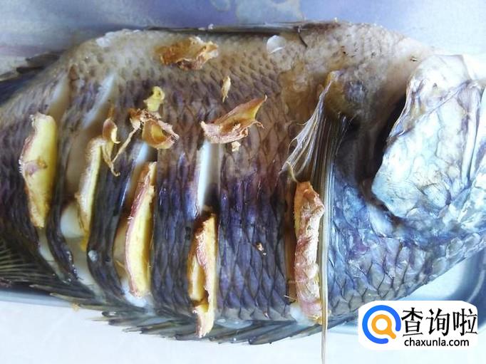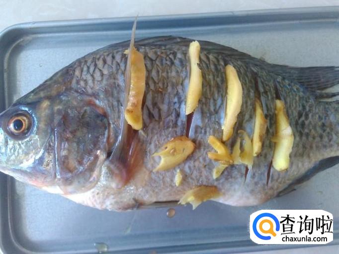 首先把罗非鱼清理干净,然后在鱼身均匀地切连刀,再用盐全面刷过。