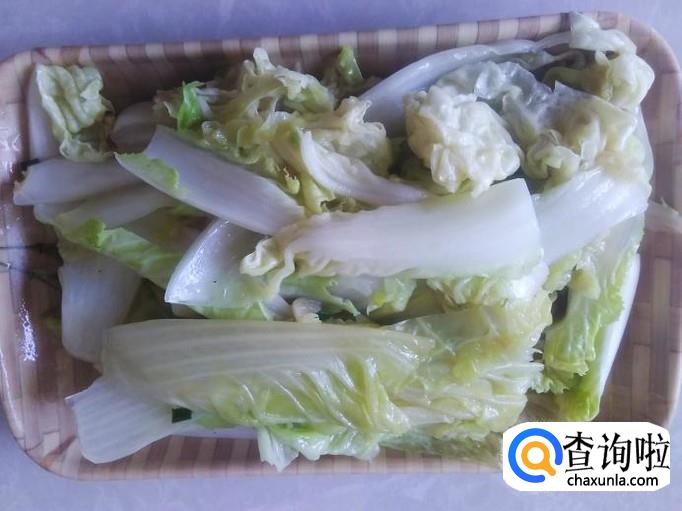 再开火下油,放娃娃菜进去,加适量的盐翻炒至八成熟铲上碟子。