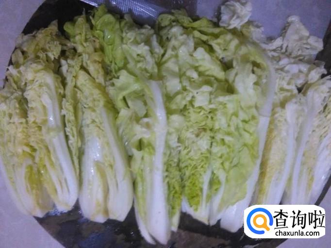 然后用一个大点的平底锅,首先把娃娃菜摆在锅底,再把烤好的鱼铺上去。